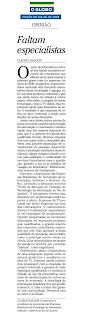 A propósito do tema, O GLOBO de hoje publicou o artigo “Faltam especialistas”.
